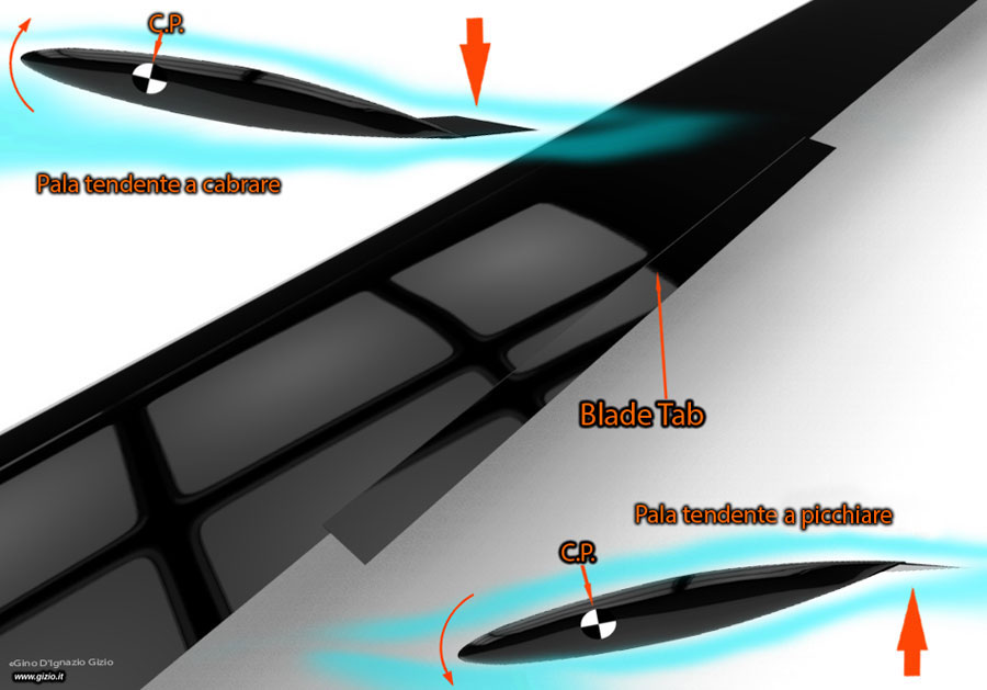 agire sull'assetto della pala attraverso la regolazione del piccolo alettone,